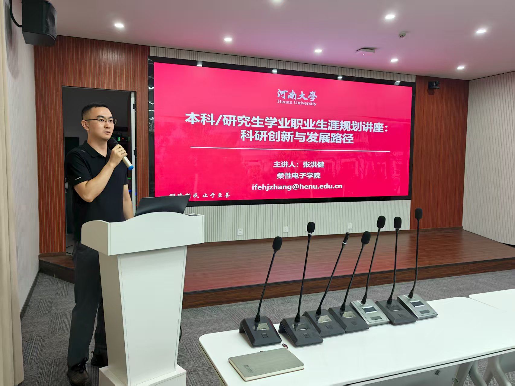 随后,张洪健老师为全体学生开展学业职业生涯规划讲座,通过“我是谁”这个问题为导线,以捕猎兔子的不同阶段帮助新生清晰了解各个阶段的关键节点和任务目标,从科研竞赛到生活实践,都应该以不服输,不怕累的精神,努力奔跑,勇于探索。在学习、工作规划方面,他详细展示了八叉书库