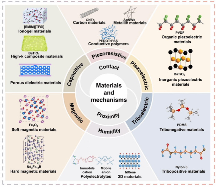 图1. MFHS的基本传感机制和代表性材料的示意图
